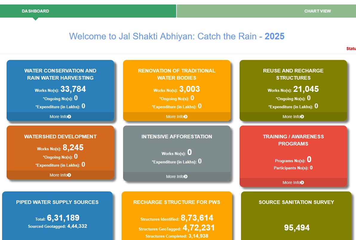 Ministry of Jal Shakti launched the Jal Shakti Abhiyan (JSA) in the year 2019 in 1,592 blocks out of 2,836 blocks in 256 water stressed districts of the country. JSA could not be taken up in 2020 due to Covid pandemic. A campaign “Catch The Rain” with the tag line “Catch the rain, where it falls, when it falls” was implemented in 2020 to nudge the states and all stakeholders to create Rain Water Harvesting Structures (RWHS). In 2021, “Jal Shakti Abhiyan: Catch the Rain” (JSA: CTR) with the theme “Catch the Rain – Where it Falls When it Falls” was launched by Hon'ble Prime Minister subsuming Catch the Rain (CTR) campaign to cover all the blocks of all districts (rural as well as urban areas) across the country. JSA: CTR has become an annual feature since 2021. JSA: CTR 2023 with the theme “Source Sustainability for Drinking Water” was implemented across the country with special focus on 150 districts identified by Jal Jeevan Mission (JJM) from 04.03.2023 to 30.11.2023. ... Read more
